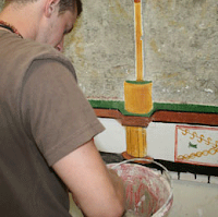 Olivia Lott and Jon Ernest have been following in the footsteps of legendary pittori italiani as they create a fresco from the ground up – or, really, from the wall out – with Professor William Pettit. The pair began by learning the complex technique required to apply the various layers of sand, lime, and marble dust required to create a workable surface and have since spent nearly two weeks on their final project, which they estimate to be about halfway finished. They were inspired by several frescoes that they saw on a day trip to Rome with Professor Pettit and have since been recreating it piece by piece in the Umbra Institute fresco studio.
