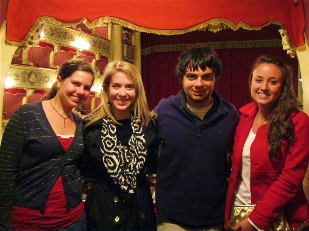 This past Tuesday night, students in Professor Antonella Valoroso’s Honors class spent a night at the Opera. The show of choice: L’Elisir d’Amore (performed at Teatro Morlacchi) written by Gaetano Donizetti in 1832. Donizetti wrote this opera in only seven days after the previous opera writer at the Teatro della Canobbiana in Milan had quit, Professor Valoroso explained during intermission. It is now one of the 20 most preformed operas in North America. With its light-hearted music and silly love tale, students were enchanted not only by Donizetti’s work but also by the theater itself. Teatro Morlacchi was built in the 1800s and became the theater of Perugia’s new middle class.